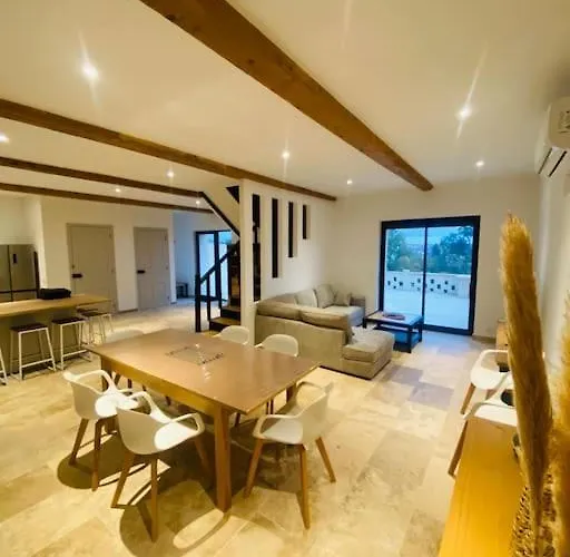 Magnifique Maison 9 Personnes A Valence Villa is set 2.5 km from the Roman Catholic church "Cathedrale Saint-Apollinaire" and represents a 2-bedroom property with a terrace. A fully equipped kitchen with a microwave and a fridge is included at the venue so that guests can cook for themselves.